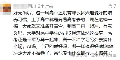 此消息一出,引发家长群体热议。支持派认为,“终于不用被考试绑架了”,认为减轻比较压力有助于孩子健康成长;焦虑派则担忧,高考竞争依然激烈,取消调研考试可能掩盖学校差距,学生压力集中在高三。也有家长质疑:“高一高二不考试,真能减负吗?”