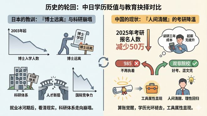 2025年,中国考研报名人数减少50万,这一信号与当年的日本何其相似。
