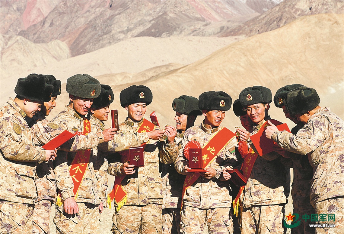冬日高原暖阳之下,戈壁驻训场气氛热烈。多名身披绶带、手捧奖章的官兵刚从上级组织的群众性岗位练兵比武中凯旋,战友们围在他们身边,为他们送上祝贺。