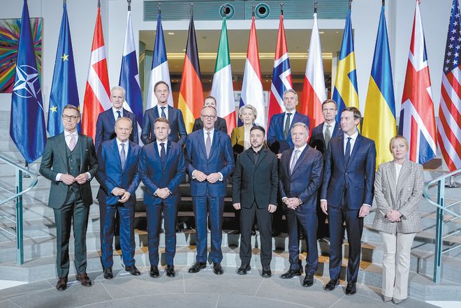欧洲多国领导人及欧盟表示欢迎谈判进展,并承诺为乌克兰提供持续安全保障、经济复苏支持及多国部队框架下的“志愿联盟”军事支持,但未明确部队是否驻扎乌境内。此外,将建立停火监督机制,并考虑俄罗斯赔偿乌克兰战争损失。