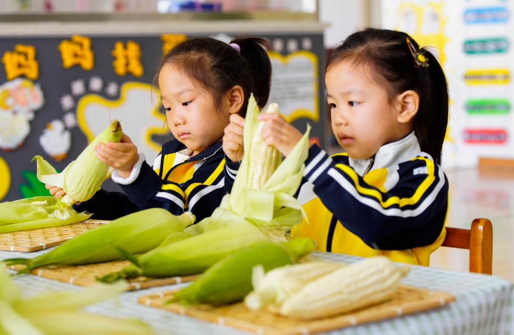 河北省唐山市海港经济开发区幼儿园,老师向小朋友普及粮食节约知识,并通过剥玉米等操作,让孩子们在体验中学会珍惜粮食。天津市滨海新区可爱蜗幼儿园的志愿者带领孩子们认识粮食作物,激发对农业和粮食安全的兴趣。