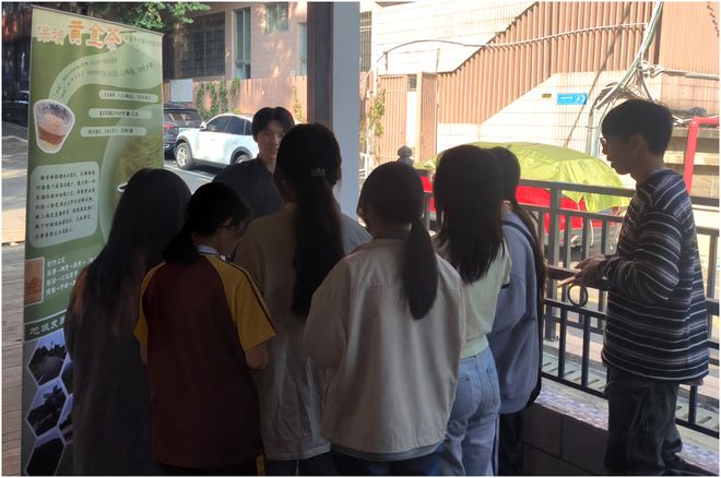 推广团队介绍,保靖黄金茶为湖南湘西保靖县的国家地理标志产品,茶叶中氨基酸含量较高,口感鲜醇。通过走进校园的方式,团队希望让更多年轻人了解这款优质茶叶,同时与关注茶文化和乡村振兴的学生进行交流分享。