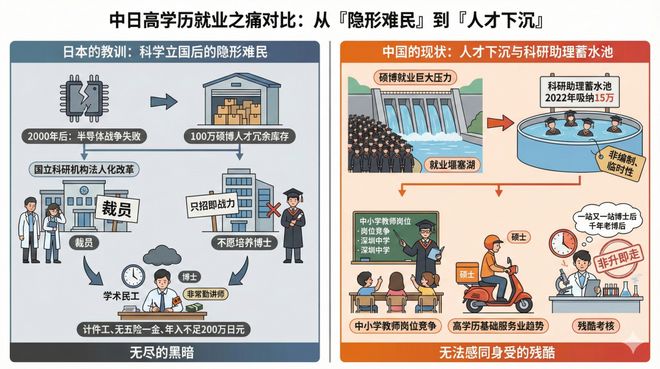 四、就业之痛:从“高学历难民”到“科研助理”1、日本的教训:“科学立国”失败后的隐形难民
