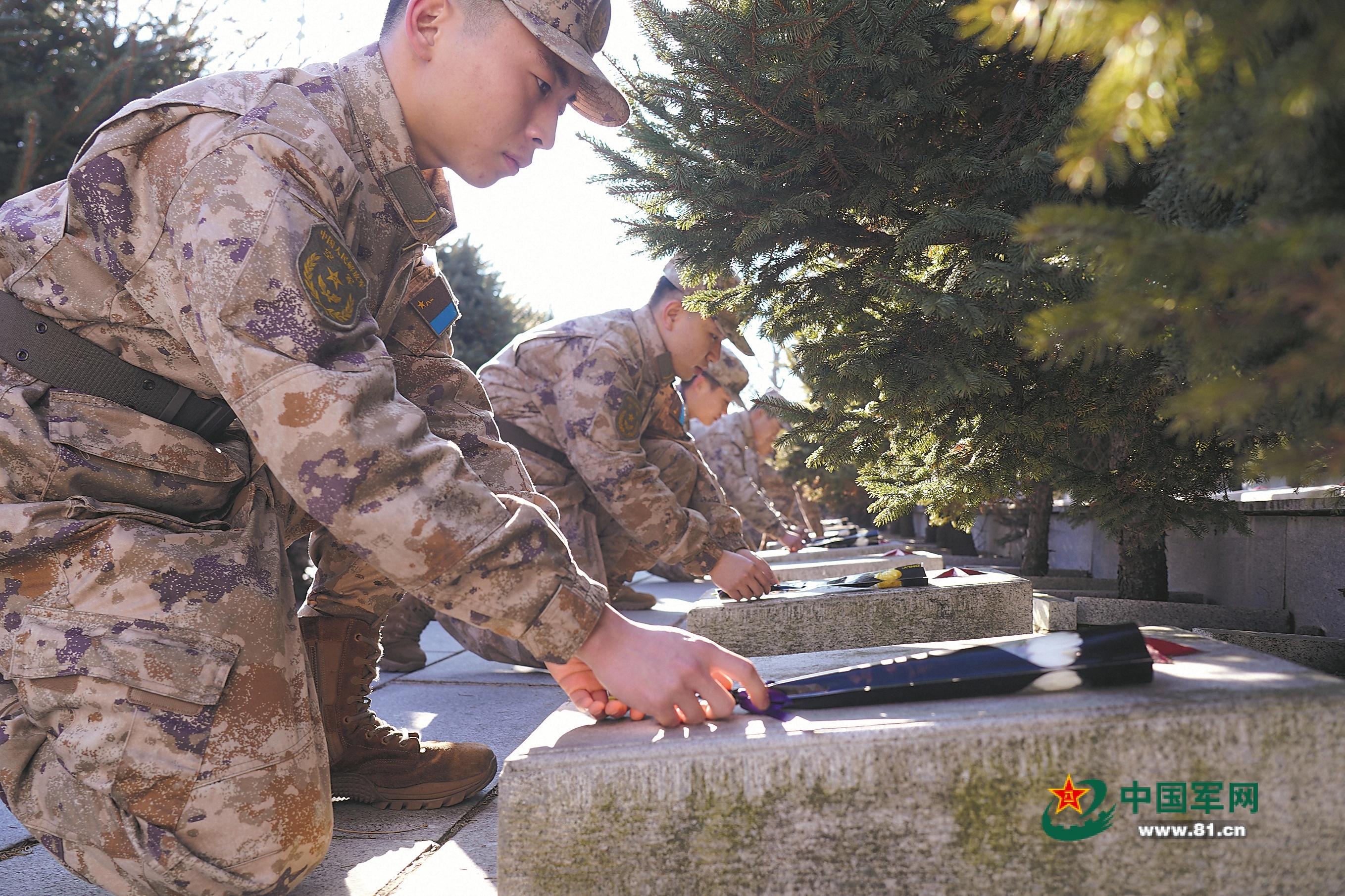 瓦房烈士陵园内,空军某部官兵向英烈献花。李玺成摄